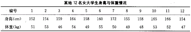 某地12名女大学生身高与体重数据如表,请回答