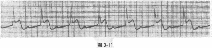患者,男性,68岁。突发胸骨后剧烈疼痛,持续3小时,伴大汗,急诊入院。有吸烟、饮酒史。心电图见图3-11。