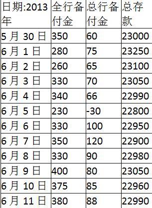 5月30日至6月11日A银行备付金情况参见表6—1。