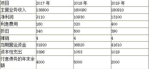 设A企业在2016年12月31日(评估基准日)的付息债务账面余额为2000万元,2016年度A企业的营运资金为26420万元,企业所得税税率为25%,A企业在2017年至2019年的预测情况如下表所示。