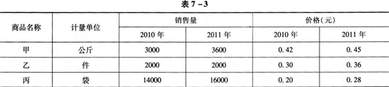 某商店三种商品销售如表7—3所示。请根据上述资料,回答题分析该商店2011年比2010年三种商品销售量和价格的变化情况,并分析其中由于销售量及价格变动对销售额的影响。 综合来看,由于三种商品的销售量和价格的变动使得销售额的变动()。
