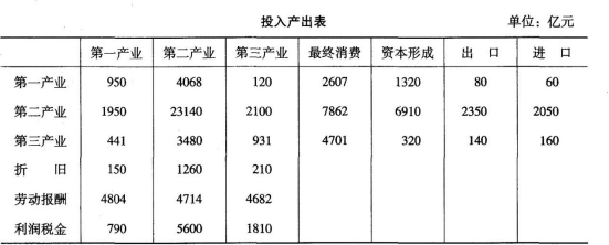 以下是某年某省三大产业投入产出简表。请根据以上资料进行计算和分析判断,在下面备选中选出正确答案。 第三产业总投入为()。查看材料