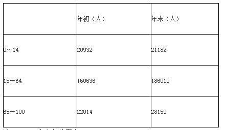 下表为某地区2008年的人口数。注l:0~14为少年儿童人口 注2:65以上为老年人口 请据此表计算回答以下问题: 该地区2008年初的人口总负担系数为( )。