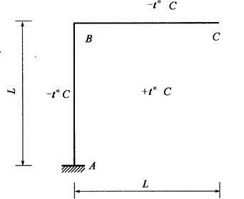 图所示结构,EI=常数,截面高h=常数,线膨胀系数为α,外侧环境温度降低t℃,内侧环境温度升高t℃,引起的C点竖向位移大小为( )。