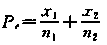 设某病男性的发病率为P1=x1/n1,女性发病率为P2=x2/n2,则男女合计的发病率Pc为()