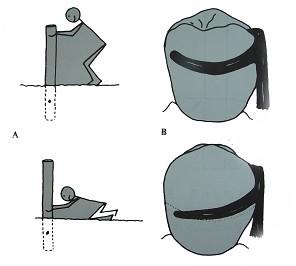 B卡环尖位于基牙倒凹区,防止义齿向脱位