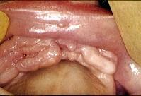 组图是牙龈瘤患者,有关此病的描述不正确的是 ( )![]()