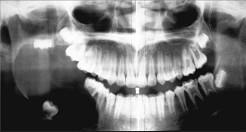 男,18岁,右颌下区反复肿胀半年,2天前再次发作,病程进展快,出现张口受限。X线片示右下颌角区沿颌骨长轴有单囊阴影,包绕右下颌第三磨牙牙冠。该病人最可能的诊断是 ( )