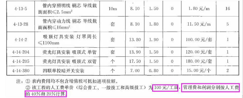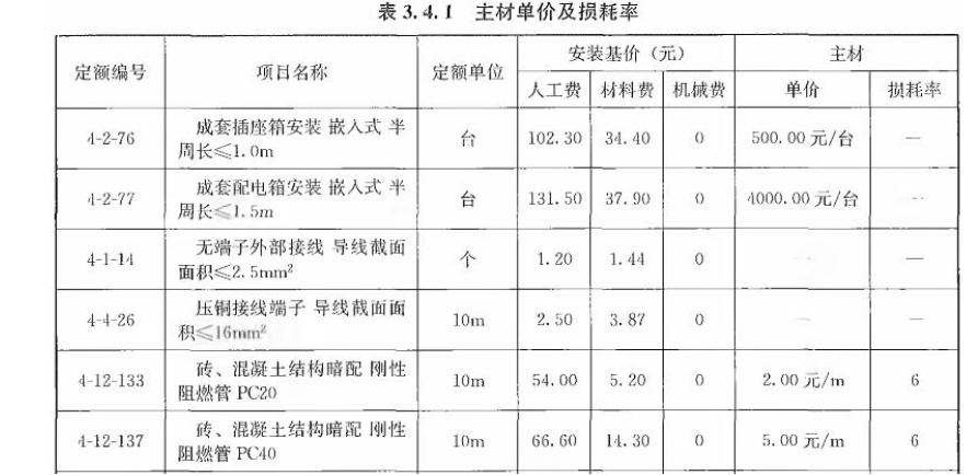 该工程的相关定额,主材单价及损耗率见表3.4.1。