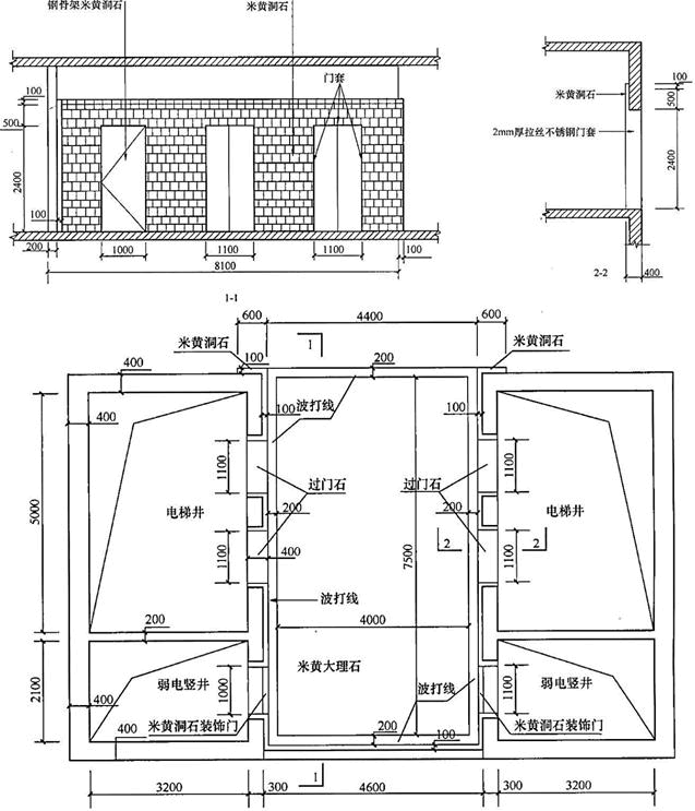 (3)强弱电竖井门为钢骨架石材装饰门(主材同墙体),其门口不设过门石。