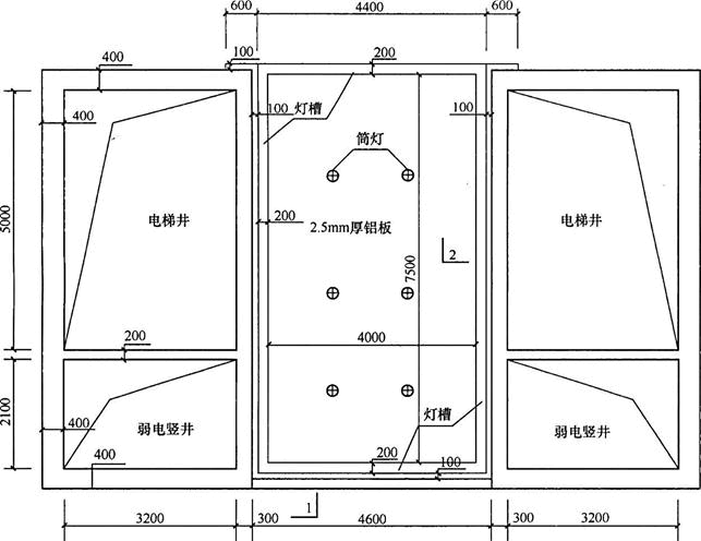 图4-24 标准层电梯厅吊顶布置尺寸图