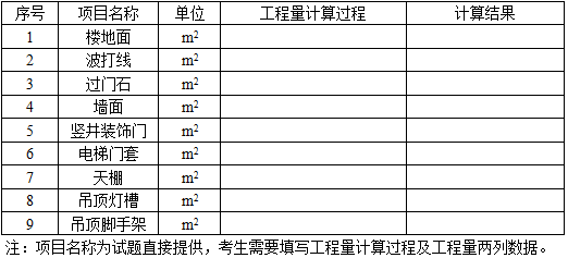 【问题】 1.根据工程竣工图纸及技术参数,按《房屋建筑与装饰工程工程量计算规范》(GB 50854—2013)的计算规则,在表4-75“工程量计算表”中,列式计算该20套电梯厅楼地面、墙面(装饰高度3000mm)、天棚、门和门套等土建装饰分部分项工程的结算工程量(竖井装饰门内的其他项目不考虑)。 表4-75 工程量计算表