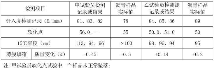 A甲试验员分别在针入度和软化点试验上存在问题