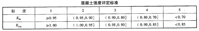 某承重构件设计采用C40混凝土,经检测,该构件的混凝土强度推定值为36MPa,测区强度平均值为39MPa,试确定该构件混凝土强度的标度为( ),混凝土强度评定标准见下表。