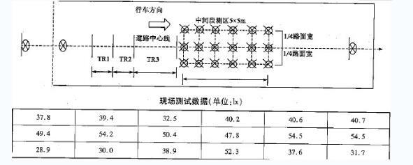 某路段照度测试现场如图,测试数据如表所示。(1)求路面平均照度()。