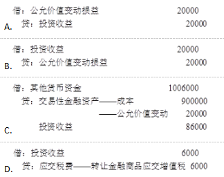 A(4)7月18日,将持有的乙企业股票全部出售,售价为1006000元,转让该金融商品应交增值税为6000元。