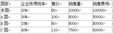 B、C三个国家各设有一个分部,该公司生产和销售一种产品,生产成本是50美元/个。不考虑贸易壁垒因素,以下是产品在四个国家的销售信息: