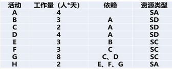 假设该项目团队有SA人员1人,SD人员2人,SC人员3人,如果A结束后,先投入2个SD完成