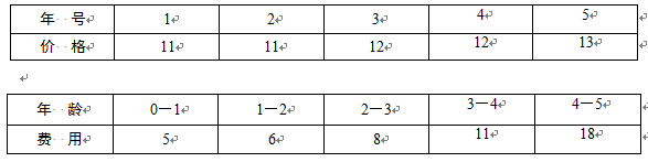 一家公司需要确定使用期为5年的一种设备的更换策略。已知各年购买设备的价格如下表所示和各年龄设备的维修价格如下表所示。