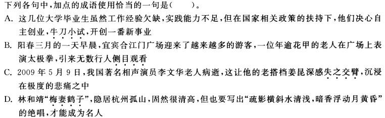 下列各句中,加点的成语使用恰当的一句是( )。![]()