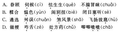 下列词语中,字形与加点字的读音全都正确的一组( )。![]()