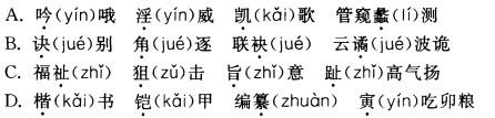 下列词语中加点的字的读音完全正确的一组是( )。![]()