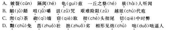 下列词语中加点的字,读音全都正确的一组是( )。![]()