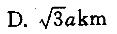 A. a km B. 3akm C. 2a km