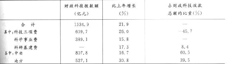 根据下面的统计表回答问题科学事业费与科研基建费相比( )。