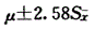在同一总体中作样本含量相等的随机抽样,有99%的样本均数在下列哪项范围内