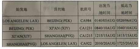 一名美国旅客(Geome,42岁)要求如下航程: