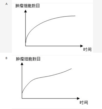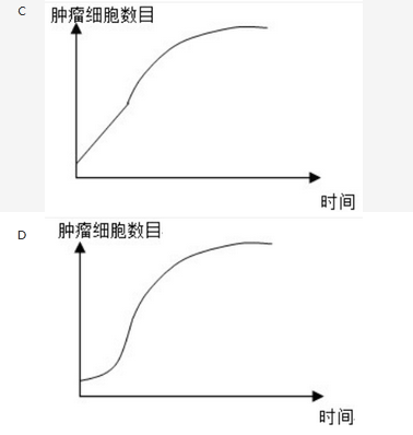 研究表明,肿瘤的生长有以下规律:当肿瘤细胞数目超过1011时才是临床可观察的;在肿瘤生长初期,几乎每隔一定时间就会观测到肿瘤细胞数量翻一番;在肿瘤生长后期,肿瘤细胞的数目趋向某个稳定值。为此,图()反映了肿瘤的生长趋势。