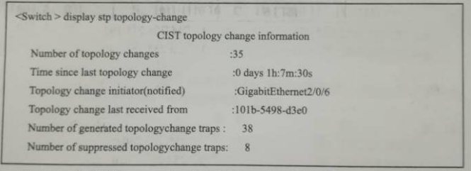 在网络运行中,发现设备 CPU 长时间占用过高,经检查发现下图中的 "Number of topology changes" 值频繁变化, 可能的原因是( )。