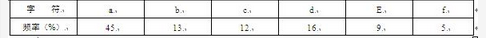 已知一个文件中出现的各个字符及其对应的频率如下表所示。若采用定长编码,则该文件中字符的码长应为 ( ) 。若采用Huffman编码,则字符序列"face"的编码应为 (请作答此空) 。