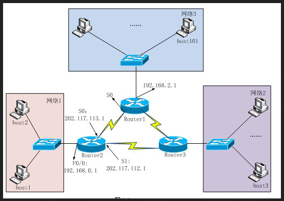 【问题1】(6分) 请填写hostl的Internet协议属性参数。 IP地址: (1) 子网掩码: (2) 默认网关: (3) 【问题2】(4分) 请填写路由器Rout1的S0 口的协议属性参数。 IP地址: (4) 子网掩码: (5) 【问题3】(6分) 在路由器Routerl上需进行RIP声明的网络是(6)、(7) 和(8)。 (6)~(8)备选答案: A.192.168.0.1/24 B.192.168.1.1/24 C.192.168.2.1/24 D.202.117.112.1/30 E.202.117.113.1/30 F.202.117.114.1/30 【问题4】(2分) 根据图1-5,在主机host3上对网络1进行了连通性测试时所经过的路径是(9)。 (9)备选答案: