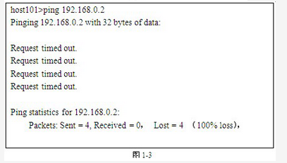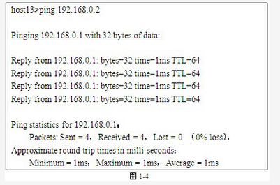 2.在主机host3上对网络1进行了连通性测试,结果如图1-4所示。