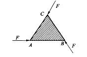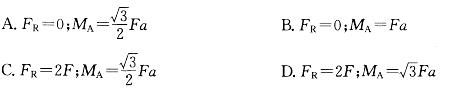 等边三角形ABC,边长为a,沿其边缘作用大小均为F的力F1、F2、F3,方向如图所示,力系向A点简化的主矢及主矩的大小分别为:![]()