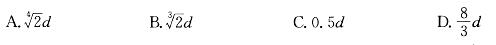 直径为d的实心圆轴受扭,若使扭转角减小一半,圆轴的直径需变为:![]()