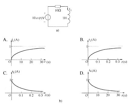 电路如图a)所示,iL(t)的波形为图b)中的哪个图所示?