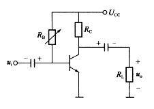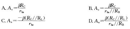 图示单管放大电路中,设晶体工作于线性区,此时,该电路的电压放大倍数为:![]()