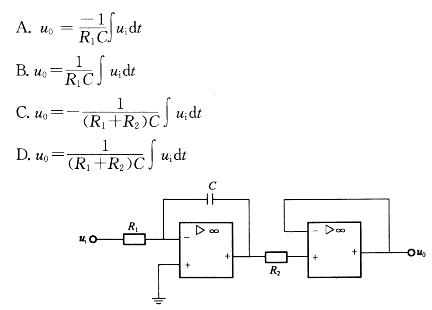 运算放大器应用电路如图所示,在运算放大器线性工作用区,输出电压与输入电压之间的运算关系是:![]()