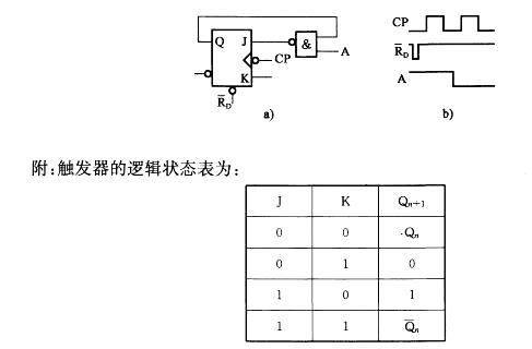 图a)所示电路中,复位信号、数据输入及时时钟脉冲信号如图b)所示,经分析可知,在第一个和第二个时钟脉冲的下降沿过后,输出Q分别等于:
