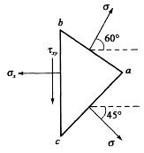 图示为三角形单元体,已知ab、ca两斜面上的正应力为σ,剪应力为零。在竖正面bc上有: