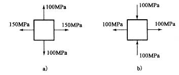 按照第三强度理论,图示两种应力状态的危险程度是: A. a)更危险