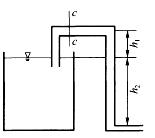 有一引水虹吸管,出口通大气(如图所示)。已知h1=1.5m,h2=3m,不计水头损失,取动能修正系数a=1。则断面c-c中心处的压强pc为: A. 14.7kPa