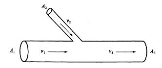 汇流水管如图所示,已知三部分水管的横截面积分别为A1=0.01m2,A2=0.005m2,A3=0.01m2,入流速度v1=4m3,v2=m3,求出流的流速v3为: A. 8m/s