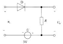 电路如图所示,D为理想二极管,ui=6sinωt(V),则输出电压的最大值U0M为: