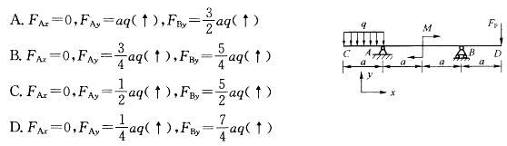 图示水平梁CD的支承力与荷载均已知,其中Fp=aq,M=a2q,支座 A、B的约束力分别为: