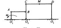 D, 且O1A = 20cm,O2C = 40cm,若杆O1A以角速度ω=3 rad/s匀速转动,则杆CD上任意点M速度及加速度的大小为: