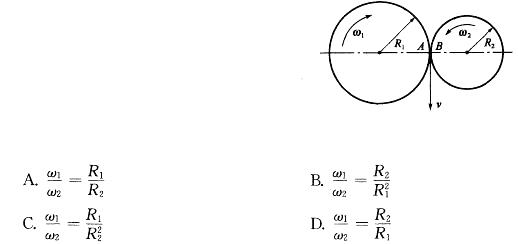两摩擦轮如图所示。则两轮的角速度与半径关系的表达式为:![]()